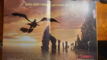 Poster central détachable de Anonyme in Héros Saga 5, Bayard Presse, 4/2017 représentant Harold et Astrid montés sur Krokmou dans le ciel de Beurk