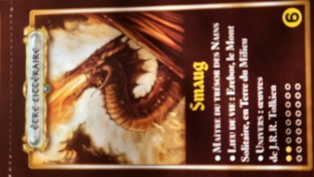 Carte détachable en couleur avec légende format 6x10cm par Anonyme représentant Smaug in Chaudron Magique HS.L'été sera chaud, Milan Presse, 6/2008