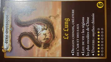 Carte détachable en couleur avec légende format 6x10cm par Anonyme représentant Le Lung in Chaudron Magique 1, Milan Presse, 4/2009 → Dragon chinois de l'air et des eaux vivants dans lkes régions les plus reculées de la Chine