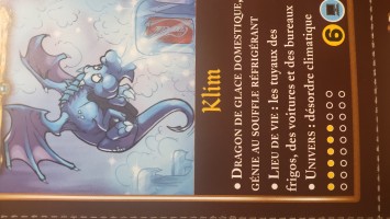 Carte détachable en couleur avec légende format 6x10cm par Anonyme représentant Le Klim in Chaudron Magique 6, Milan Presse, 7/2010 → Dragon de glace domestique au souffle réfrigérant vivant dans les tuyaux des frigos, des voitures et des bureaux