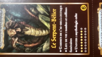 Carte détachable en couleur avec légende format 6x10cm par Anonyme représentant le Serpent-Bélier in Chaudron Magique Hors série Spécial Dragons, Milan Presse, 4/2005 → Gardien de l'au-delà celtique qui vit dans les tombes et collines funéraires
