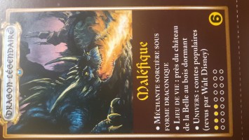 Carte détachable en couleur avec légende format 6x10cm par Anonyme représentant Maléfique in Chaudron Magique Hors série Spécial Dragons, Milan Presse, 4/2005 → Méchante sorcière sous forme draconique qui vit prés du château de la Belle au bois dormant