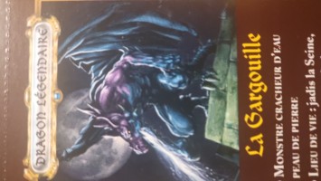 Carte détachable en couleur avec légende format 6x10cm par Anonyme représentant la Gargouille in Chaudron Magique Hors série Spécial Dragons, Milan Presse, 4/2005 → Monstre cracheur d'eau à peau de pierre des légendes françaises qui sur les cathédrales