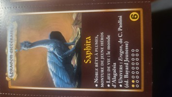 Carte détachable en couleur avec légende format 6x10cm par Anonyme représentant Saphira in Chaudron Magique Hors série Spécial Dragons, Milan Presse, 4/2005 → Noble bête à plumes montures du jeune héros de la série Eragon (L'Héritage) de Christopher Paolini