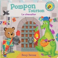 → Viens t'amuser au château fort avec Pompon l'ourson ! Pompon l'ourson, te voilà chevalier ! Aujourd'hui Pompon l'ourson découvre le château fort, participe à un tournoi et partage un grand banquet ! Quelle belle aventure ! Un livre bien solide plein de tirettes à manipuler où Pompon est accompagné par un petit dragon vert en guise de ménestrel.